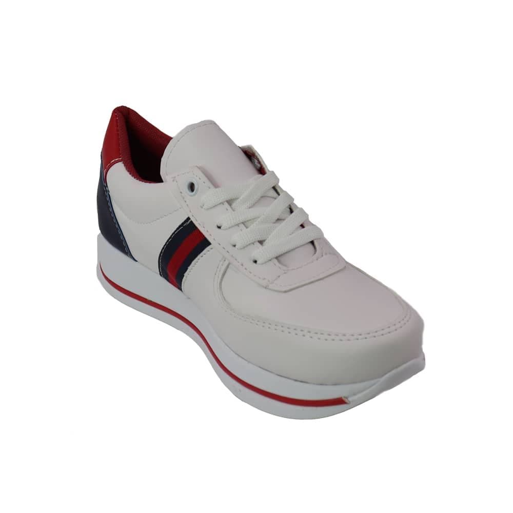 Tennis skin 104 color blanco con franjas de color azul, luce un look casual a la moda , con estos tennis jamás sacrificarás la comodidad por la moda ya que son perfectos para caminar y usarlos todos los días del año. La comodidad en tus tennis skin 104.