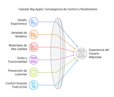 Big Apple stands out for its focus on ergonomics, designing shoes that perfectly adapt to the shape of the foot. This adaptation not only enhances comfort but also helps prevent injuries and reduce fatigue, which is crucial in intensive work environments.