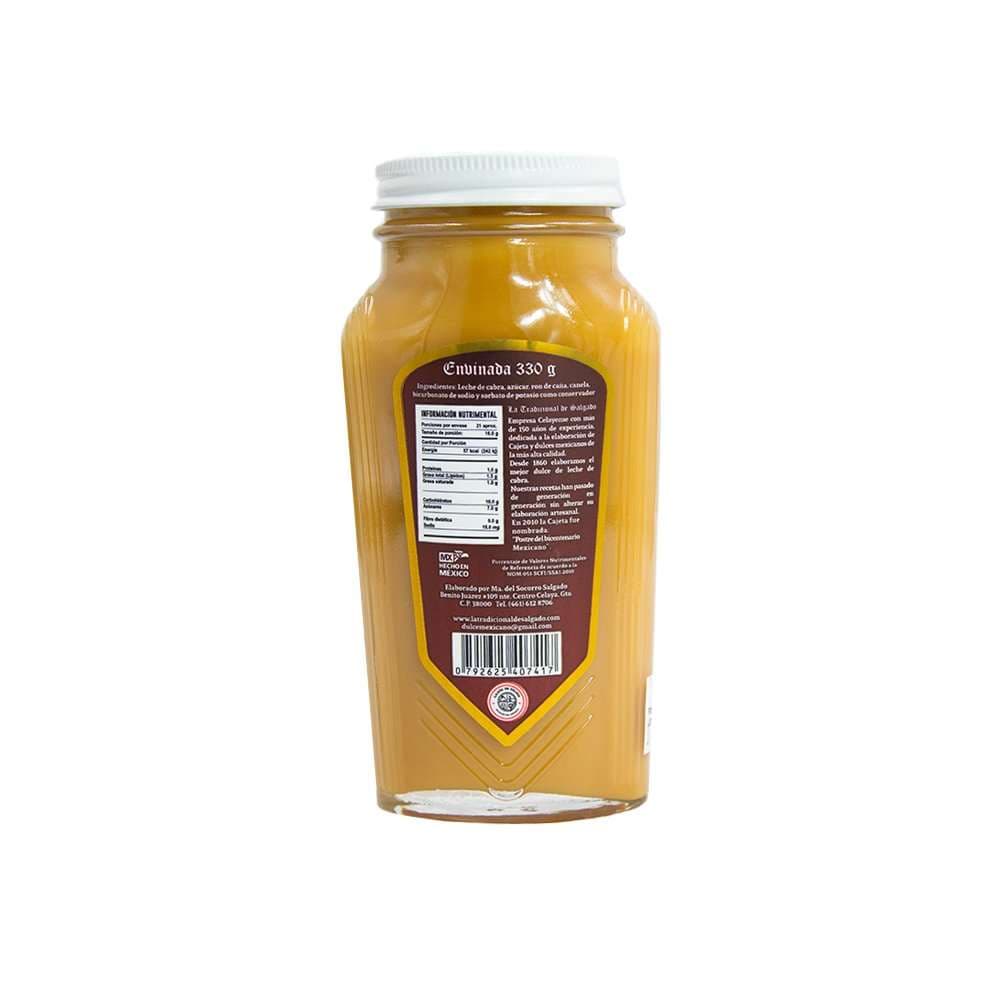 Su cajeta Tradicional de Salgado adquiere un sabor envinado debido al adicionamiento de un ligero porcentaje de alcohol en su preparación y con un delicioso sabor a dulce de leche tradicional mexicano. Elaborada en su lugar de origen Celaya.