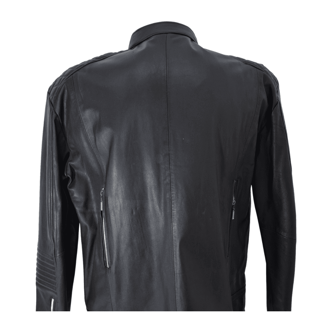 Chamarra para Hombre con detalles de costura en hombros, antebrazo y frente, con diseño exclusivo. Color negro fabricado en 100% Piel de Borrego. Entre sus beneficios podrás encontrar pieles de muy alta calidad y cierre metálico, agradable al tacto.