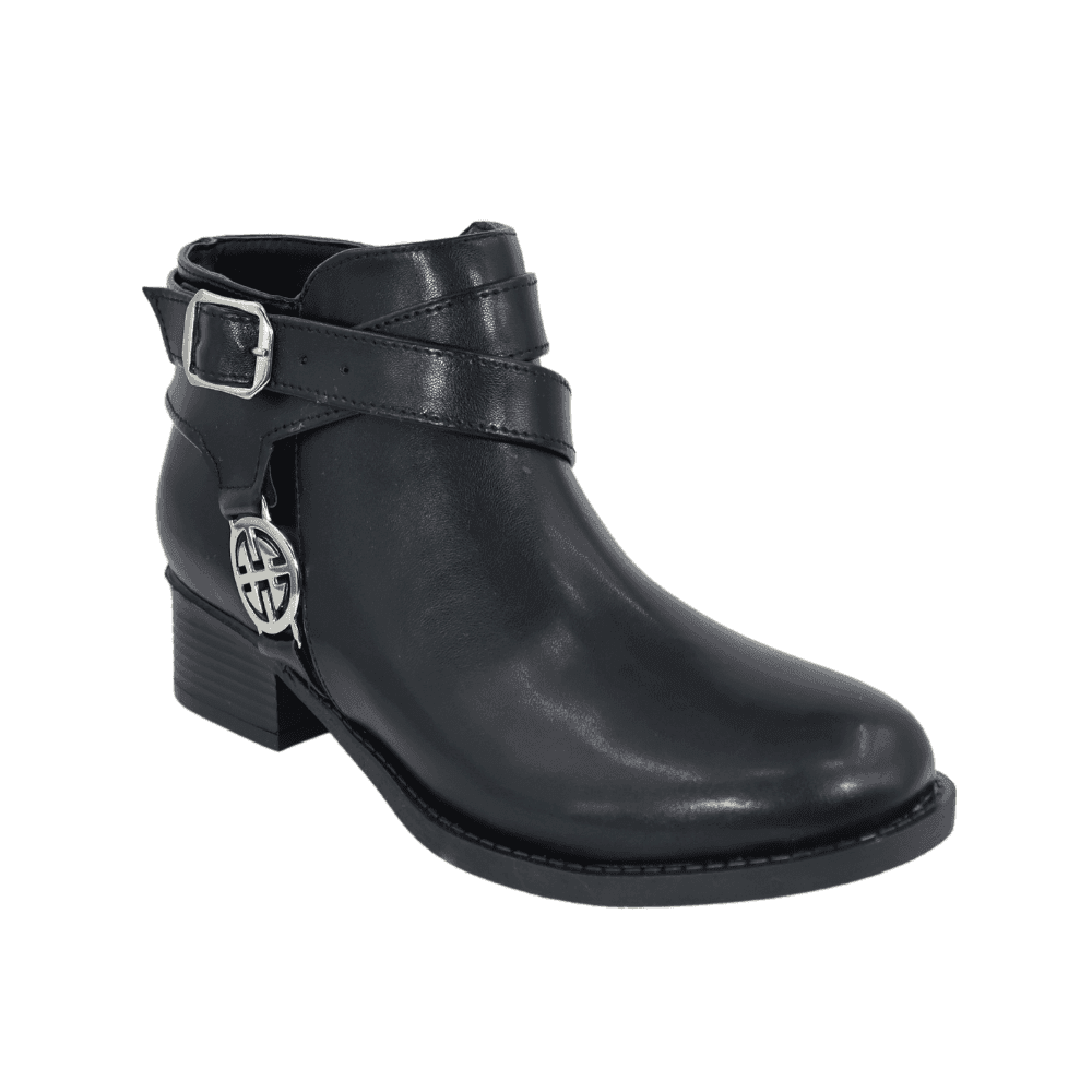 Botín Luna 8, color negro con detalles en color plateado para que puedes jugar con tus accesorios, estos botines son muy cómodos y versátiles, puedes usarlos cualquier día del año. Tus mejores aliados está nueva temporada de otoño-invierno!!