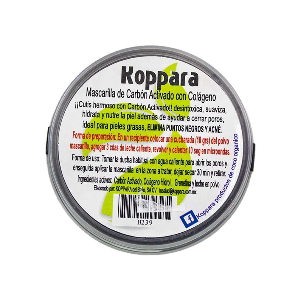 Koppara, La mascarilla de carbón activado de coco orgánico. Limpia, absorbe grasa, desintoxica la piel clarifica, saca puntos negros y blancos además de suavizar y aumenta elasticidad a la piel, proporcionando una apariencia más limpia y sin grasa.
