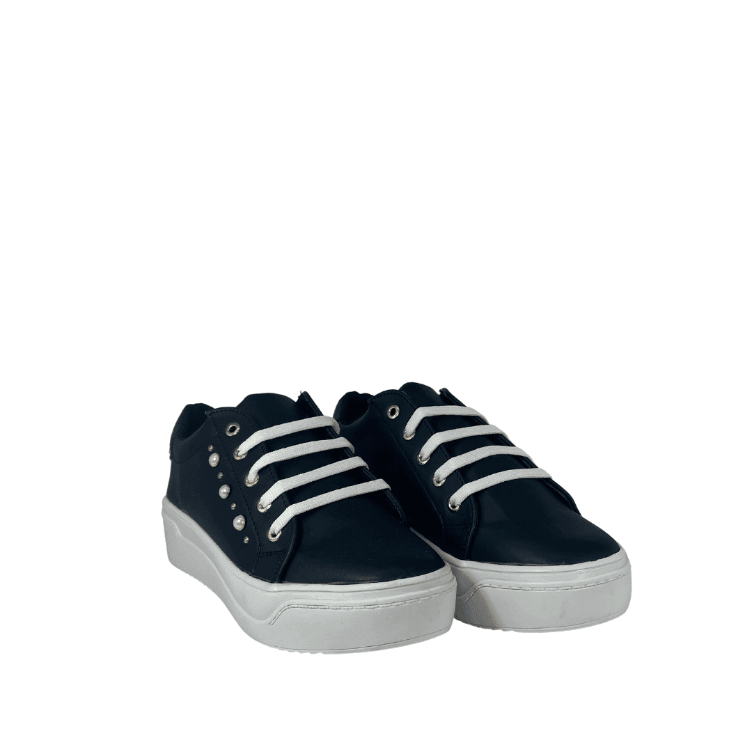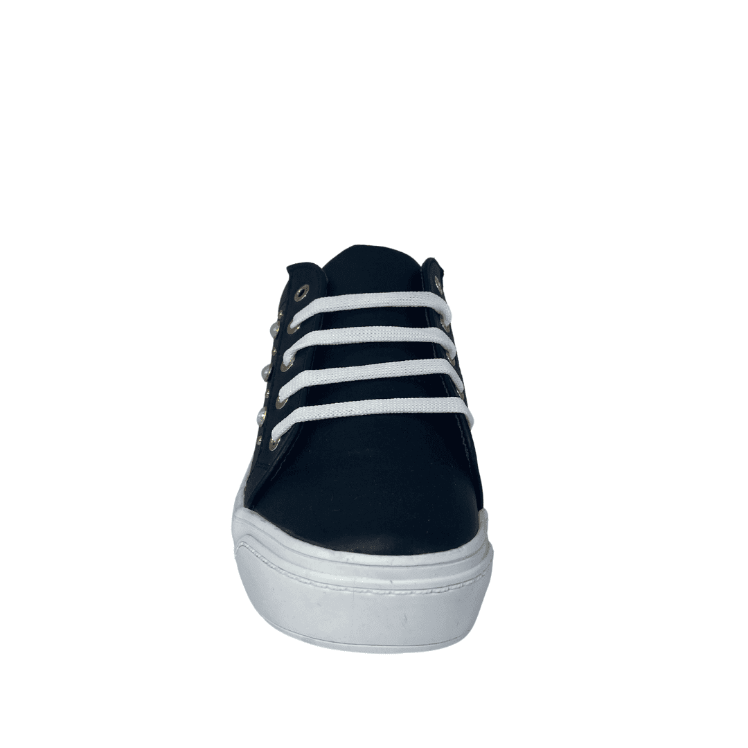 Sneakers color negro con detalles de perlas y estoperoles listos para acompañarte en cada paso que des, su horma es muy cómoda y es la clásica de cualquier sneaker a la moda, su estilo te brinda detalles y un color muy combinable. Estos sneakers van con cualquier estilo y mood, puedes usarlos para ir a estudiar, a trabajar o a una fiesta ya que son muy versátiles. ¡Los sneakers básicos que necesitas!